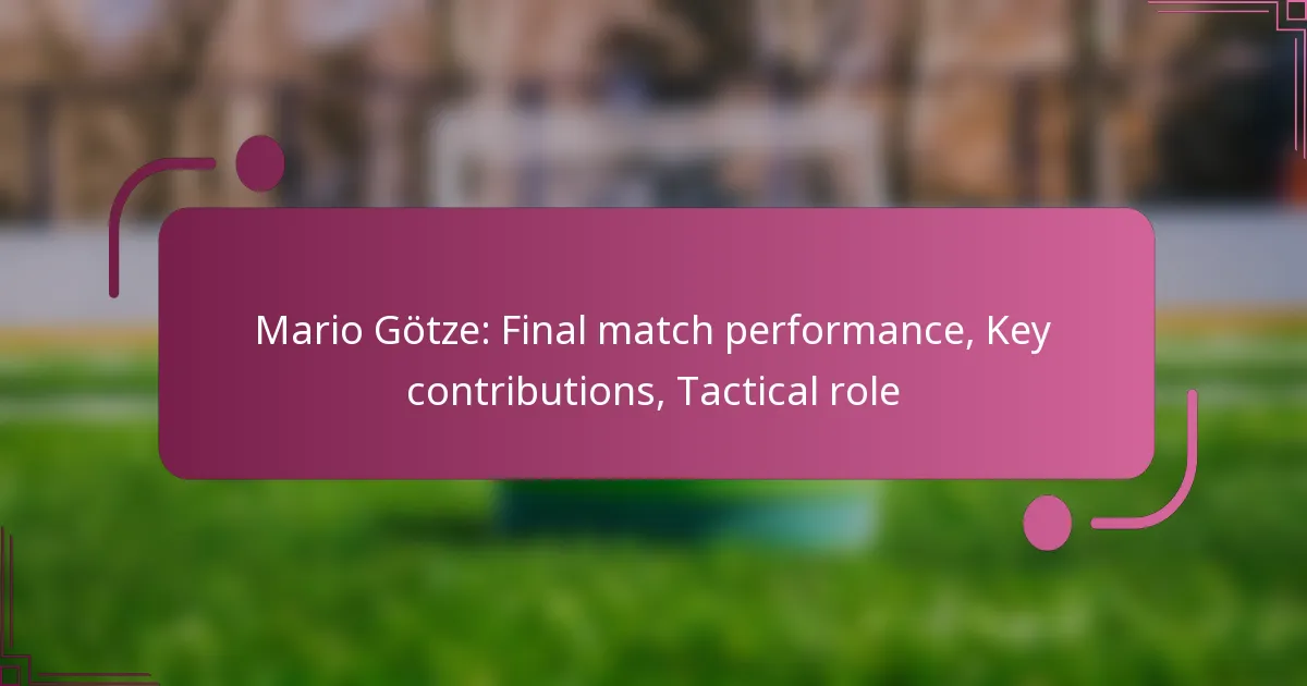 Mario Götze’s final match performance in the 2014 FIFA World Cup was defined by his game-winning goal, which not only secured Germany’s victory but also highlighted his exceptional tactical awareness. His contributions extended beyond scoring, as his strategic positioning and ability to perform under pressure were crucial in shaping the team’s overall strategy and dynamics throughout the match.